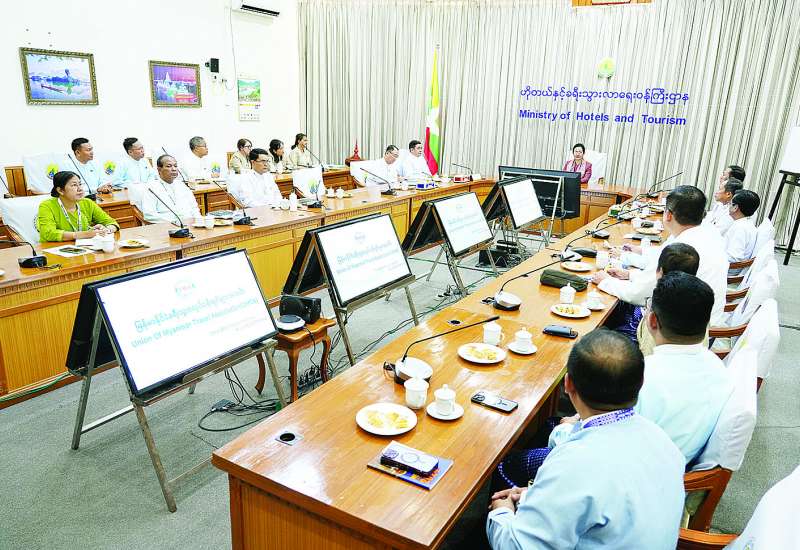 ဟိုတယ်နှင့် ခရီးသွားလာရေးဝန်ကြီးဌာန ပြည်ထောင်စုဝန်ကြီး ဒေါက်တာသက်သက်ခိုင်သည် မြန်မာနိုင်ငံခရီးသွားလုပ်ငန်းရှင်များအသင်းမှ အသင်း၏ဥက္ကဋ္ဌနှင့် အလုပ်အမှုဆောင်အဖွဲ့ကို ယနေ့ မွန်းလွဲပိုင်းတွင် နေပြည်တော်ရှိ ဝန်ကြီးဌာန နီလာခန်းမ၌ လက်ခံတွေ့ဆုံသည်။