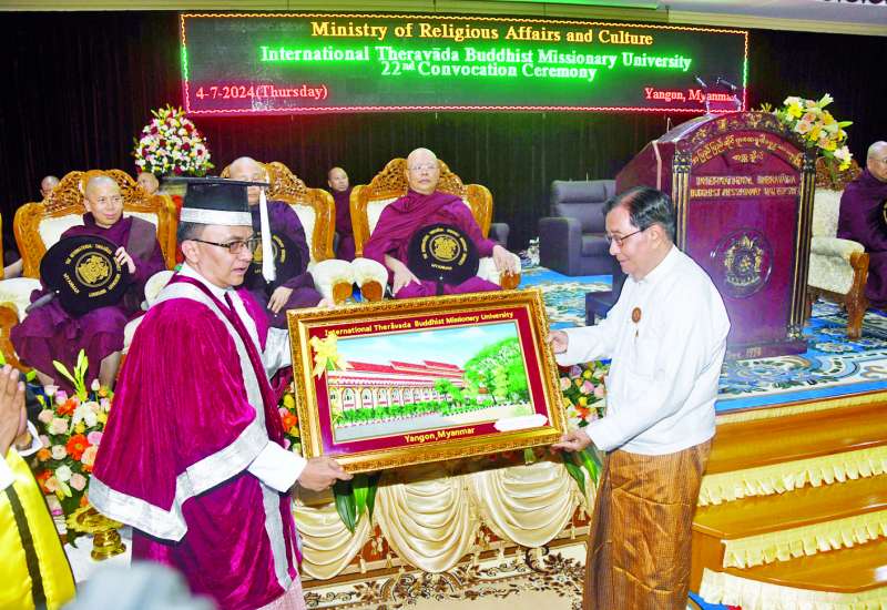 အပြည်ပြည်ဆိုင်ရာထေရဝါဒ ဗုဒ္ဓသာသနာပြုတက္ကသိုလ် (၂၂) ကြိမ်မြောက် ဘွဲ့နှင်းသဘင်နှင့် ဒီပလိုမာအောင်လက်မှတ် ပေးအပ်ပွဲအခမ်းအနားကို ယနေ့မွန်းလွဲ ၁ နာရီတွင် ရန်ကုန်တိုင်းဒေသကြီး မရမ်းကုန်းမြို့နယ် အပြည်ပြည်ဆိုင်ရာထေရဝါဒ ဗုဒ္ဓသာသနာပြုတက္ကသိုလ် Seminar Hall ၌ ကျင်းပသည်။
