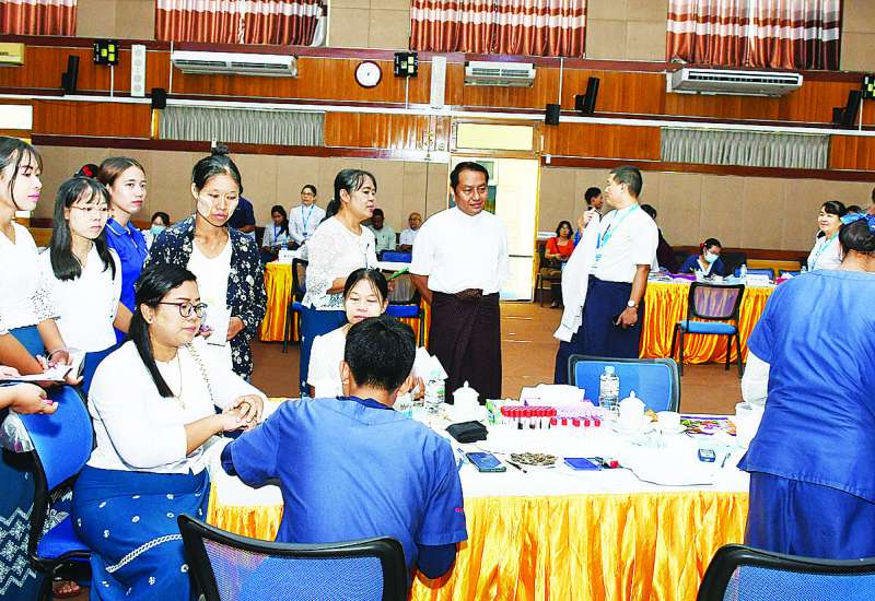 အလုပ်သမားဝန်ကြီးဌာန လူမှု ဖူလုံရေးအဖွဲ့နှင့် တော်ဝင်နဂါး ရောဂါရှာဖွေရေးစင်တာတို့ ပူးပေါင်း၍ လူမှုဖူလုံရေးအကျုံးဝင် မှတ်ပုံတင်ထားသည့် ပြန်ကြားရေးဝန်ကြီးဌာနမှ ဝန်ထမ်းများအား ကျန်းမာရေးစောင့်ရှောက်မှုပေးခြင်းကို ယနေ့နံနက်ပိုင်းတွင် ပြန်ကြားရေးဝန်ကြီးဌာန စုပေါင်းခန်းမ၌ ဆောင်ရွက်ပေးသည်။