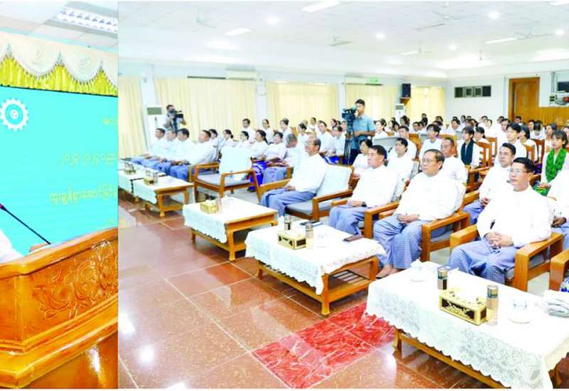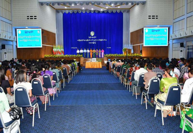 အလုပ်သမားဝန်ကြီးဌာနရှိ ဦးစီးဌာနအဖွဲ့ရုံးများက ၂၀၂၃-၂၀၂၄ ပညာသင်နှစ် တက္ကသိုလ်ဝင် စာမေးပွဲတွင် ထူးချွန်စွာအောင်မြင်ခဲ့သည့် ဝန်ထမ်းများ၏သားသမီး ကျောင်းသား ကျောင်းသူများအား ဂုဏ်ပြုချီးမြှင့်ခြင်း အခမ်းအနားကို ယနေ့နံနက်ပိုင်းတွင် နေပြည်တော်ရှိ အဆိုပါဝန်ကြီးဌာနစုဝေးခန်းမ၌ ကျင်းပသည်။