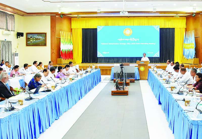 ကျန်းမာရေးဝန်ကြီးဌာန ပြည်သူ့ကျန်းမာရေးဦးစီးဌာန ဗဟိုတိုးချဲ့ကာကွယ်ဆေးထိုးလုပ်ငန်းဌာနခွဲမှ ရေးဆွဲပြုစုလျက်ရှိသော အမျိုးသားအဆင့် ကာကွယ်ဆေးထိုးလုပ်ငန်းဆိုင်ရာ မဟာဗျူဟာ (၂၀၂၅-၂၀၂၉) National Immunization Strategy (NIS) (2025-2029) ရှင်းလင်းတင်ပြခြင်းအစည်းအဝေးကို ယနေ့တွင် ကျန်းမာရေးဝန်ကြီးဌာန၌ ကျင်းပသည်။
