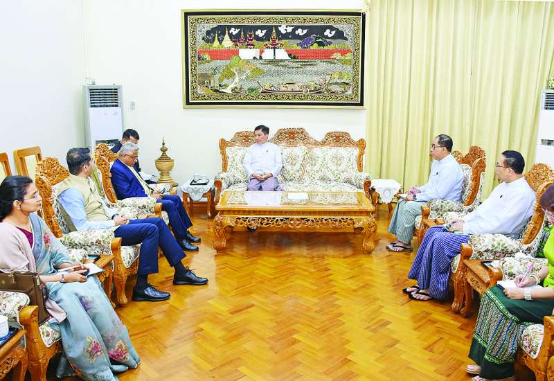 စီးပွားရေးနှင့်ကူးသန်းရောင်းဝယ်ရေးဝန်ကြီးဌာန ပြည်ထောင်စုဝန်ကြီး ဦးချစ်ဆွေသည် မြန်မာနိုင်ငံဆိုင်ရာ အိန္ဒိယနိုင်ငံ သံအမတ် ကြီး H.E. Mr. Abhay Thakur နှင့် (၉) ကြိမ်မြောက် မြန်မာ-အိန္ဒိယ နှစ်နိုင်ငံကုန်သွယ်ရေး ပူးတွဲကော်မတီအစည်းအဝေးသို့ တက်ရောက်ရန် နေပြည်တော်၌ ရောက်ရှိနေသည့် အိန္ဒိယနိုင်ငံကူးသန်းရောင်းဝယ်ရေးနှင့် စက်မှုဝန်ကြီးဌာန ကူးသန်းရောင်းဝယ်ရေးဦးစီးဌာန Additional Secret-ary Sh. Nitin Kumar Yadav တို့ ဦးဆောင်သော ကိုယ်စားလှယ်အဖွဲ့အား ယနေ့ညနေပိုင်းတွင် နေပြည်တော် ရုံးအမှတ် (၃) စီးပွားရေးနှင့် ကူးသန်းရောင်းဝယ်ရေးဝန်ကြီးဌာန ပြည်ထောင်စုဝန်ကြီး၏ ဧည့်ခန်းမ၌ လက်ခံတွေ့ဆုံသည်။