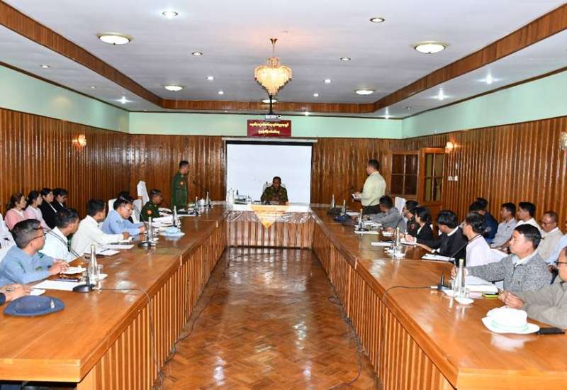 ရှမ်းပြည်နယ်(မြောက်ပိုင်း)၊ မိုင်းရယ်မြို့တွင် ၂၀၂၅ ခုနှစ်၊ ပါတီစုံဒီမိုကရေစီ အထွေထွေရွေးကောက်ပွဲ အပိုင်း(၂)အောင်မြင်စွာကျင်းပနိုင်ရေး လုပ်ငန်းညှိနှိုင်းအစည်းအဝေးကို ယနေ့နံနက်ပိုင်းတွင် အဆိုပါမြို့ရှိ အထွေထွေအုပ်ချုပ်ရေးဦးစီးဌာန အစည်းဝေးခန်းမ၌ပြုလုပ်ရာ အရှေ့မြောက်တိုင်းစစ်ဌာနချုပ်တိုင်မှူး ဗိုလ်မှူးချုပ်အေးမင်းဦးနှင့် ပြည်နယ်ရွေးကောက်ပွဲကော်မရှင်အဖွဲ့ခွဲ(လာရှိုး)မှ တာဝန်ရှိသူများ၊ ဌာနဆိုင်ရာတာဝန်ရှိသူများ တက်ရောက်ကြသည်။