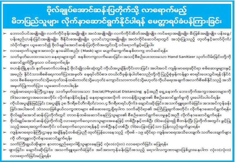 အာဇာနည်ဗိမာန်သို့ လာရောက်ဂါရဝပြုမည့် မိဘပြည်သူများ လိုက်နာဆောင်ရွက်နိုင်ပါရန် မေတ္တာရပ်ခံပန်ကြားခြင်း