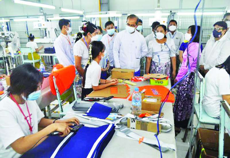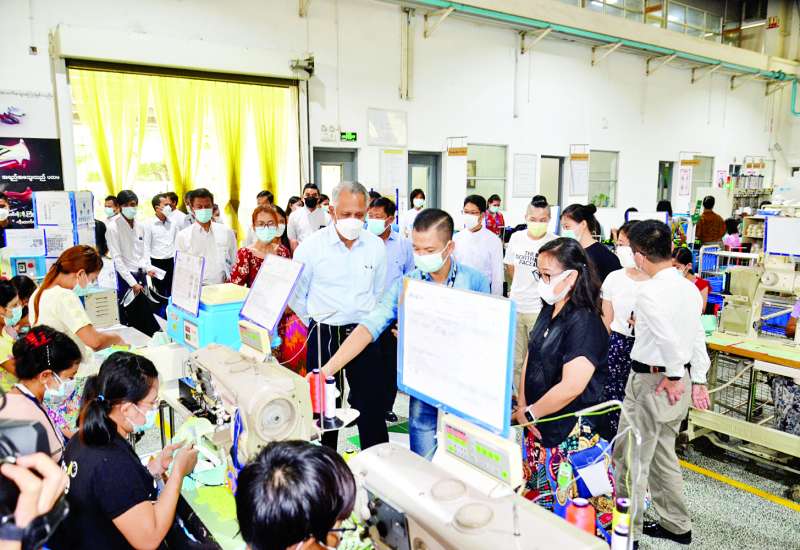 ရင်းနှီးမြှုပ်နှံမှုနှင့် နိုင်ငံခြားစီးပွားဆက်သွယ်ရေးဝန်ကြီးဌာန ပြည်ထောင်စုဝန်ကြီး ဦးအောင်နိုင်ဦးသည် ဇူလိုင် ၈ ရက် မွန်းလွဲပိုင်းက ပဲခူးတိုင်းဒေသကြီး ပဲခူးမြို့နယ်အတွင်းရှိ မြန်မာနိုင်ငံရင်းနှီးမြှုပ်နှံမှုကော်မရှင်၏ ခွင့်ပြုမိန့်ဖြင့် ဆောင်ရွက်လျက်ရှိသည့် နိုင်ငံခြားရင်းနှီးမြှုပ်နှံမှု လုပ်ငန်းဖြစ်သော Panko Bago Co.,Ltd. ၏ CMP စနစ်ဖြင့် အဝတ်အထည်အမျိုးမျိုး ထုတ်လုပ်ခြင်းလုပ်ငန်းသို့ သွားရောက်လေ့လာ ကြည့်ရှုသည်။