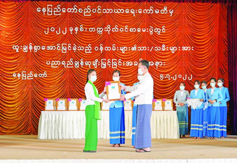 နေပြည်တော် စည်ပင်သာယာရေးကော်မတီ ၂၀၂၁-၂၀၂၂ ပညာသင်နှစ် တက္ကသိုလ်ဝင်စာမေးပွဲတွင် ထူးချွန်စွာအောင်မြင်ခဲ့ကြသော ကျောင်းသား ကျောင်းသူများအား ပညာရည်ချွန်ဆုများ ပေးအပ်ချီးမြှင့်ခြင်းအခမ်းအနားကို ယနေ့မွန်းလွဲ ၂ နာရီက နေပြည်တော် စည်ပင်သာယာရေးကော်မတီ မြို့တော်ခန်းမရှိ မင်္ဂလာခန်းမ၌ ကျင်းပသည်။