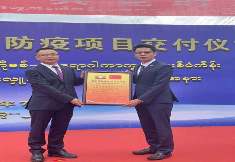 ကိုဗစ်-၁၉ ကူးစက်ပြန့်ပွားမှုကာကွယ်တိုက်ဖျက်ရာ၌ အထောက်အကူဖြစ်စေရန် တရုတ်ပြည်သူ့သမ္မတနိုင်ငံက မြန်မာနိုင်ငံ၊ ကချင်ပြည်နယ်အစိုးရသို့ လှူဒါန်းသည့် ယွမ်ငွေ ၆ သန်းကျော်တန်ဖိုးရှိ ကိုဗစ်-၁၉ ရောဂါထိန်းချုပ် ကုသရေးအထောက်အကူပြုပစ္စည်းများ လွှဲပြောင်းပေးအပ်ပွဲအခမ်းအနားကို ယနေ့တွင် ယူနန်ပြည်နယ်၊ ပေါင်စန်းပြည်နယ်ခွဲ၊ ထိန်ချုံးမြို့၌ ကျင်းပသည်။