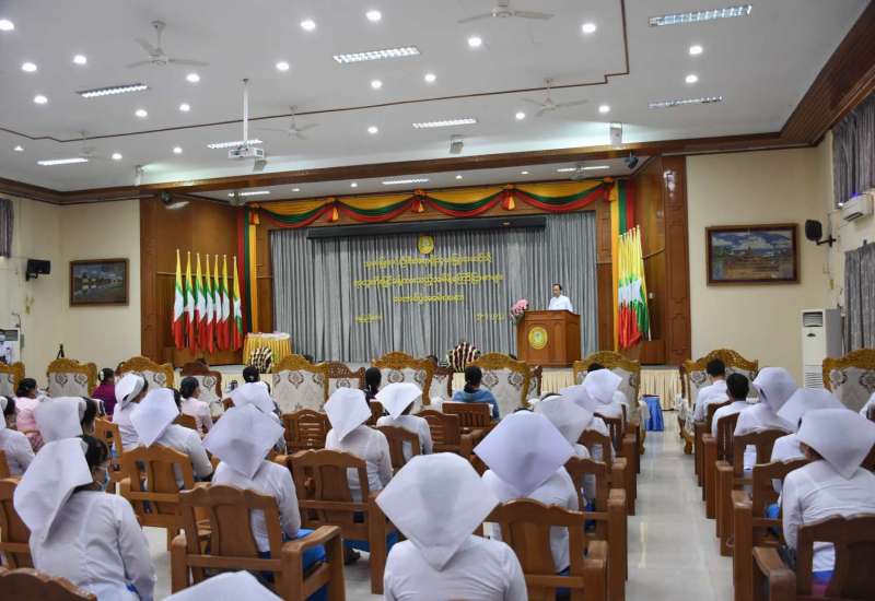 သူနာပြုအုပ်/ဦးစီးအရာရှိ(သူနာပြု)အဆင့်သို့ ရာထူးတိုးမြှင့်ခန့်ထားသည့် အမိန့်ကြော်ငြာစာများ ပေးအပ်ပွဲအခမ်းအနားကို ယနေ့နံနက် ၉ နာရီတွင် ကျန်းမာရေးဝန်ကြီးဌာန၊ ရုံးအမှတ်(၄) အစည်းအဝေးခန်းမတွင် ကျင်းပသည်။