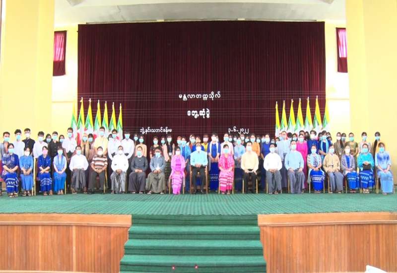 ပြည်ထောင်စုရာထူးဝန်အဖွဲ့ နိုင်ငံ့ဝန်ထမ်း တက္ကသိုလ်(အောက်မြန်မာပြည်)တွင် ဖွင့်လှစ်ခဲ့သည့် စာရေးဝန်ထမ်းကြီးကြပ်မှု တန်းမြင့်သင်တန်း အမှတ်စဉ်(၈၇) နှင့် စာရေးဝန်ထမ်းအခြေခံသင်တန်း အမှတ်စဉ်(၁၉၉)တို့၏ သင်တန်းဆင်း စစ်ရေးပြ အခမ်းအနားကို ယနေ့နံနက် ၇ နာရီခွဲတွင် တက္ကသိုလ်စစ်ရေး ပြကွင်း(၁)၌ ကျင်းပရာ ပြည်ထောင်စုရာထူးဝန်အဖွဲ့ တာဝန်ခံအဖွဲ့ဝင် ဦးစိုးတင့်၊ နိုင်ငံ့ဝန်ထမ်းတက္ကသိုလ်(အောက်မြန်မာပြည်) ပါမောက္ခချုပ် ဦးဇော်ဇော်၊ ဒုတိယပါမောက္ခချုပ်များ၊ ဌာနကြီးမှူးများ၊ တက္ကသိုလ်သင်ကြားရေး/စီမံဌာနများမှ ပါမောက္ခ၊ ဆရာ ဆရာမများနှင့် တာဝန်ရှိသူများ၊ သင်တန်းသား သင်တန်းသူများ တက်ရောက်ကြသည်။