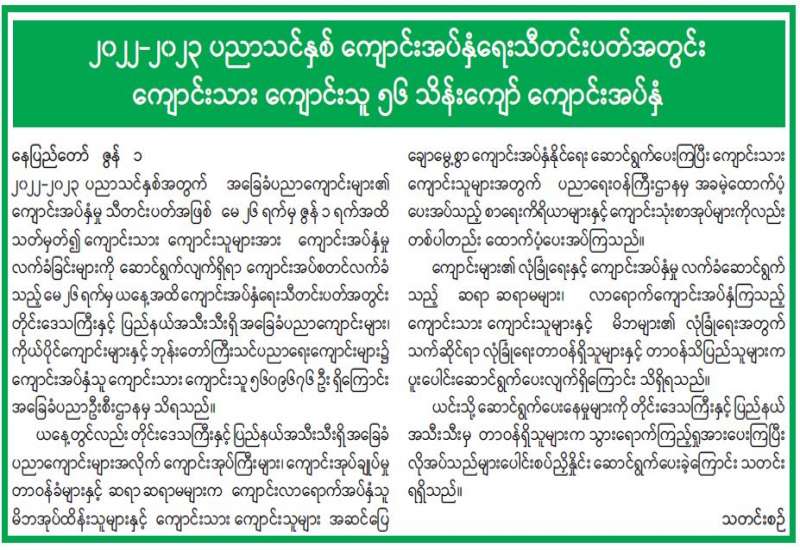 ၂၀၂၂-၂၀၂၃ ပညာသင်နှစ် အခြေခံပညာကျောင်းများကို ယနေ့နံနက်ပိုင်းတွင်စတင်ဖွင့်လှစ်၍ သက်ဆိုင်ရာအတန်းအလိုက်သင်ခန်းစာများ သင်ကြားပို့ချပေးလျက်ရှိသည်။