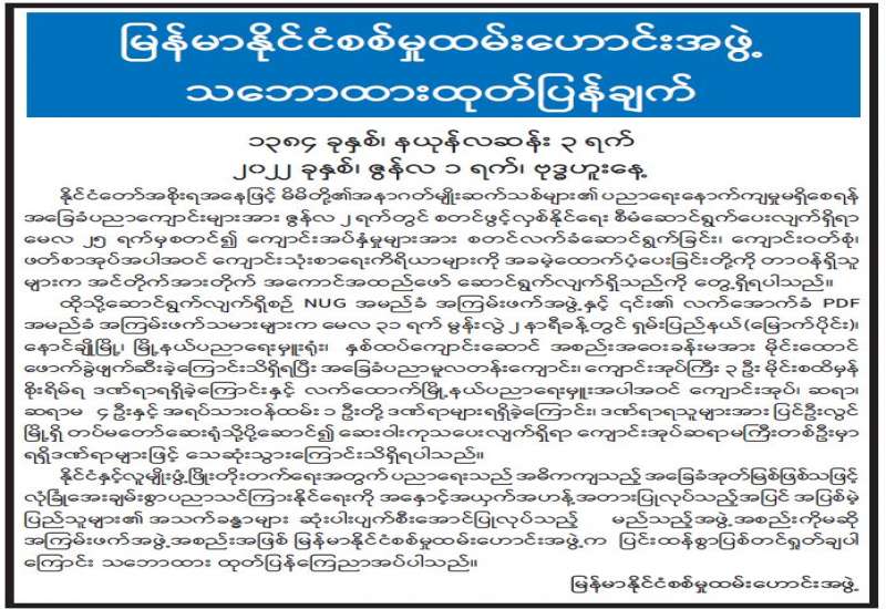 e-Government စနစ်၏ အခြေခံအကျဆုံးလုပ်ငန်းတစ်ခုဖြစ်သည့် e-ID စနစ်အကောင်အထည်ဖော်ဆောင်ရွက်နိုင်ရေးအတွက် e-ID စနစ်လုပ်ငန်းကော်မတီ တတိယအကြိမ်ညှိနှိုင်းအစည်းအဝေးကို ယနေ့နံနက် ၁၀ နာရီက နေပြည်တော်ရှိ၊ လူဝင်မှုကြီးကြပ်ရေးနှင့်ပြည်သူ့အင်အားဝန်ကြီးဌာန၊ အစည်းအဝေးခန်းမ၌ကျင်းပသည်။