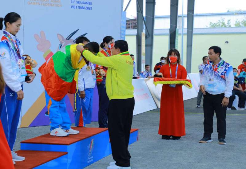 ဗီယက်နမ်နိုင်ငံက အိမ်ရှင်အဖြစ် လက်ခံကျင်းပလျက်ရှိသည့် (၃၁) ကြိမ်မြောက် အရှေ့တောင်အာရှအားကစားပြိုင်ပွဲ ပီတန်း(အမျိုးသား/ အမျိုးသမီး)အားကစားပြိုင်ပွဲ ပွဲစဉ်များကို ယနေ့ မွန်းလွဲပိုင်းတွင် ဗီယက်နမ်နိုင်ငံ ဟနွိုင်းမြို့ရှိ National Sports Training Center ၌ ကျင်းပရာ မြန်မာနိုင်ငံအိုလံပစ်ကော်မတီဥက္ကဋ္ဌ အားကစားနှင့်လူငယ် ရေးရာဝန်ကြီးဌာန ပြည်ထောင်စုဝန်ကြီး ဦးမင်းသိန်းဇံ၊ အားကစားနှင့်ကာယပညာဦးစီးဌာန ညွှန်ကြားရေးမှူးချုပ် ဦးထွန်းမြင့်ဦးနှင့် တာဝန်ရှိသူများ၊ မြန်မာအားကစားအဖွဲ့များမှ တက်ရောက် ကြည့်ရှုအားပေးကြသည်။
