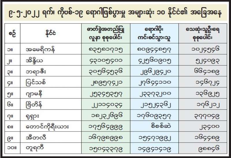 ကျန်းမာရေးဝန်ကြီးဌာနအနေဖြင့် နိုင်ငံအတွင်း ကူးစက်ဖြစ်ပွားနေသော COVID-19 ရောဂါ ကာကွယ်၊ ကုသ၊ ထိန်းချုပ်ရေးလုပ်ငန်းများကို အရှိန်အဟုန်မြှင့် ဆောင်ရွက်လျက်ရှိပါသည်။
