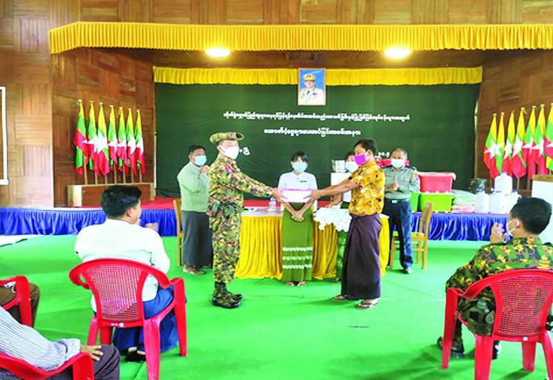 ချင်းပြည်နယ် ပလက်ဝမြို့ရှိ ယာယီတိုက်ပွဲရှောင်စခန်းများတွင် ယာယီနေထိုင်၍ နေရပ်ဒေသအသီးသီးသို့ ပြန်လည် နေထိုင်ကြမည့် ပလက်ဝမြို့နယ်အတွင်းရှိ ကျေးရွာများမှ ယာယီတိုက်ပွဲရှောင်အိမ်ထောင်စု များကို ချင်းပြည်နယ်အစိုးရအဖွဲ့က ထောက်ပံ့သည့် နေအိမ်အသစ်ဆောက်လုပ်ရန်နှင့် နေအိမ်ပြုပြင်ရန်အတွက် ထောက်ပံ့ငွေများနှင့် အသုံးအဆောင်ပစ္စည်းများ ပေးအပ်ခြင်းကို ဧပြီ ၃၀ ရက်က ပလက်ဝမြို့ ကီမိုခန်းမ၌ပြုလုပ်ရာ အနောက်ပိုင်းတိုင်းစစ်ဌာနချုပ်မှ တာဝန်ရှိသူများ၊ ဌာနဆိုင်ရာတာဝန်ရှိသူများနှင့် တိုက်ပွဲရှောင်ပြည်သူများ တက်ရောက်ကြသည်။