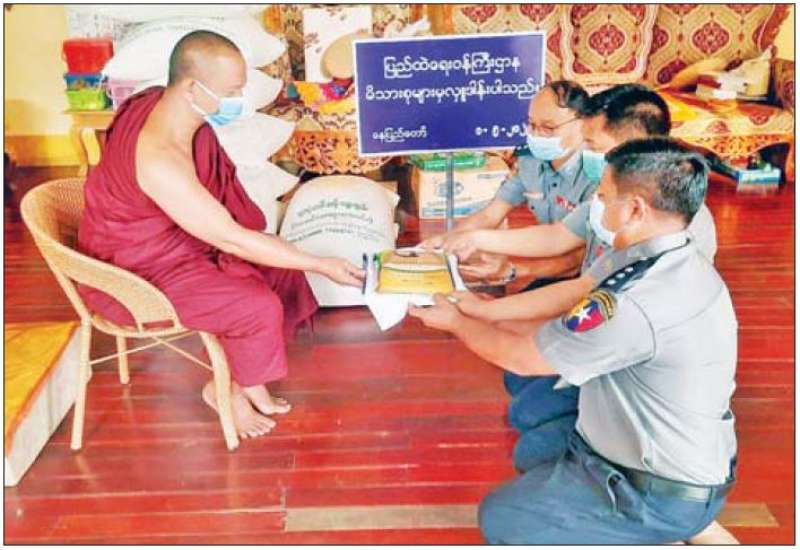 ပြည်ထဲရေးဝန်ကြီးဌာန တပ်ဖွဲ့ဝင်/ဝန်ထမ်းအရာထမ်း၊ အမှုထမ်းမိသားစုများက မြို့နယ်အသီးသီးရှိ ဘုန်းတော်ကြီး ကျောင်းများသို့ ဆွမ်းဆန်တော်များ ဆက်ကပ် လှူဒါန်းခြင်းကို ဆောင်ရွက်လျက်ရှိသည်။