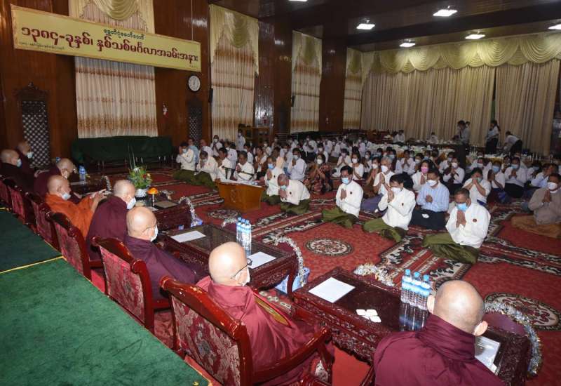 လူမှုဝန်ထမ်း၊ ကယ်ဆယ်ရေးနှင့်ပြန်လည်နေရာချထားရေးဝန်ကြီးဌာန၏ နှစ်သစ်ကူး အန္တရာယ်ကင်းပရိတ်တရားတော်နာယူခြင်းအခမ်းအနားကို ယနေ့နံနက် ၉ နာရီခွဲတွင် အဆိုပါ ဝန်ကြီးဌာန၊ စုပေါင်းခန်းမ၌ ကျင်းပသည်။