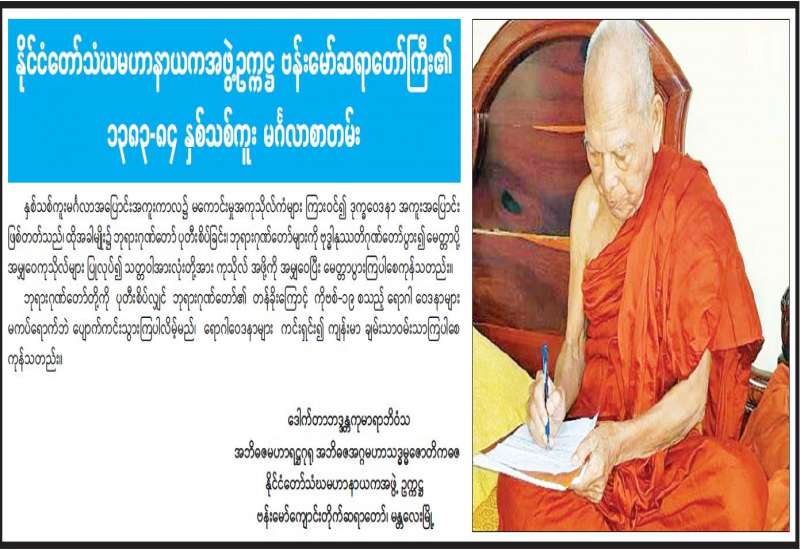 နိုင်ငံတော်သံဃမဟာနာယကအဖွဲ့ဥက္ကဋ္ဌ ဗန်းမော်ဆရာတော်ကြီး၏ ၁၃၈၃-၈၄ နှစ်သစ်ကူး မင်္ဂလာစာတမ်း