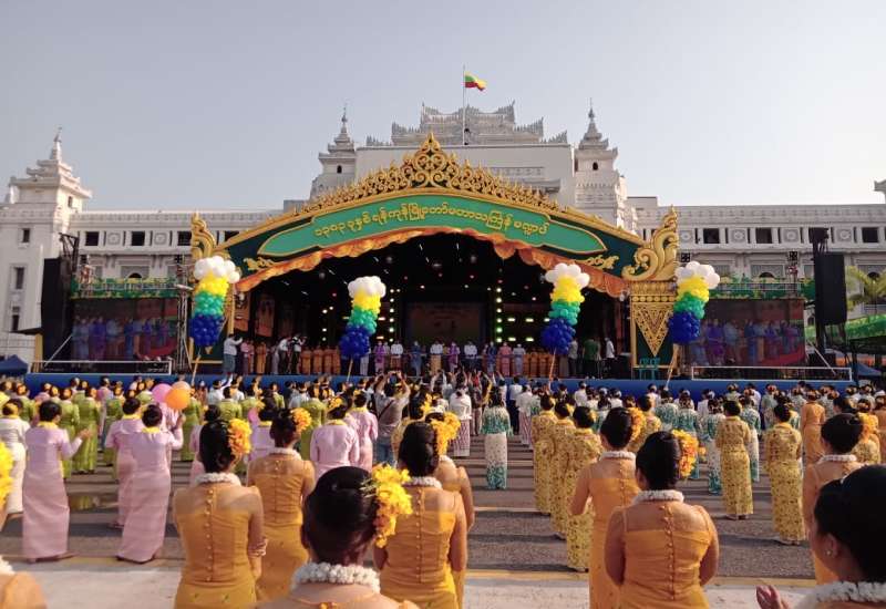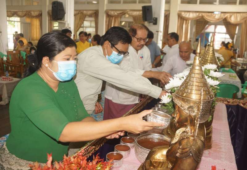 ရန်ကုန်တိုင်းဒေသကြီး ရခိုင်စာပေနှင့် ယဉ်ကျေးမှုအဖွဲ့ (ရန်ကုန်) နှင့် ရခိုင်လူမှုရေးအသင်းအဖွဲ့များ ပါဝင်ကျင်းပသည့် ရခိုင်ရိုးရာယဉ်ကျေးမှု သင်္ကြန်နံ့သာသွေးပွဲနှင့် ဘုရားရေသပ္ပါယ်ပွဲ အခမ်းအနားကို ယနေ့နံနက်(၉)နာရီက ရွှေတိဂုံဘုရားအရှေ့ဘက်မုခ်ရှိ ရခိုင်ပြည်နယ်ဓမ္မာရုံ၌ ကျင်းပခဲ့သည်။