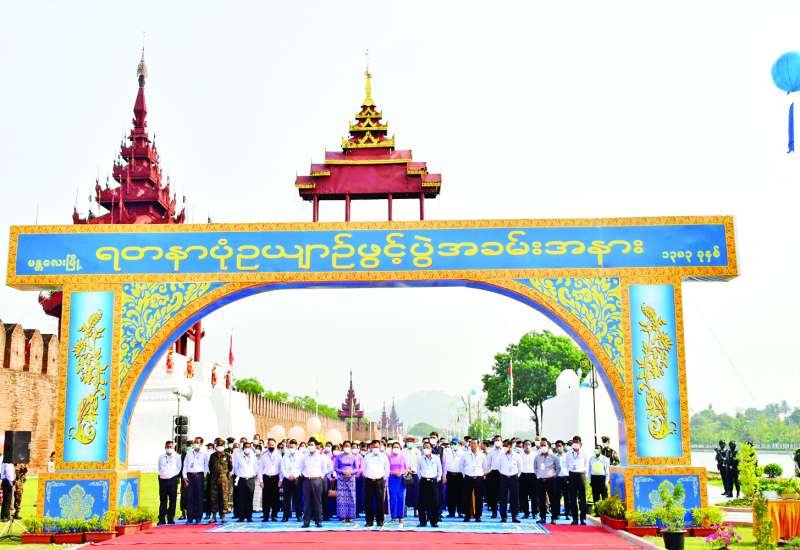 နိုင်ငံတော်စီမံအုပ်ချုပ်ရေးကောင်စီဥက္ကဋ္ဌ နိုင်ငံတော်ဝန်ကြီးချုပ် ဗိုလ်ချုပ်မှူးကြီး မဟာသရေစည်သူ မင်းအောင်လှိုင်၏လမ်းညွှန်မှုဖြင့် အများပြည်သူများ စိတ်အေးချမ်းသာစွာ အနားယူအပန်းဖြေနိုင် ရေးအတွက် ရတနာပုံဥယျာဉ်ကြီးအား ရည်မှန်းချက်ကြီးကြီးဖြင့် ၂၀၂၁ ခုနှစ် အောက်တိုဘာ ၂ ရက်မှ စတင်ဆောက်လုပ်ခဲ့ရာ ၂၀၂၂ ခုနှစ် ဧပြီ ၉ ရက်တွင် တည်ဆောက်ပြီးစီးခဲ့သည့်အတွက် ယနေ့ မြန်မာသက္ကရာဇ် ၁၃၈၃ ခုနှစ် တန်ခူးလဆန်း ၁၃ရက်၊ ခရစ်နှစ်၂၀၂၂ ခုနှစ် ဧပြီ ၁၃ ရက်တွင် ကျရောက် သော မြန်မာ့ရိုးရာသင်္ကြန်အကြိုနေ့ မင်္ဂလာနံနက်ခင်း အချိန်တွင် ရတနာပုံဥယျာဉ်ဖွင့်ပွဲအခမ်းအနားကို အဆိုပါ ဥယျာဉ်တည်ရှိရာ နန်းမြို့ရိုးနှင့် ကျုံးရေပြင်ကြားတွင် အောင်အောင်မြင်မြင်နှင့် စည်ကားသိုက်မြိုက်စွာ ကျင်းပသည်။