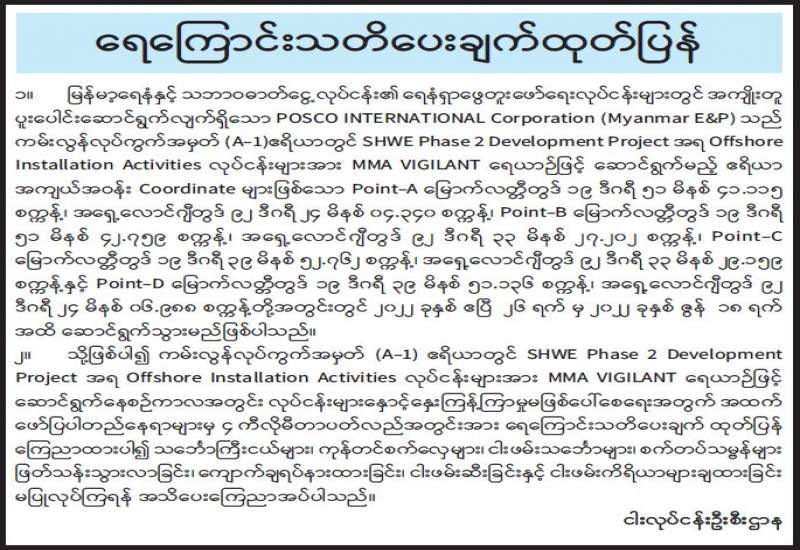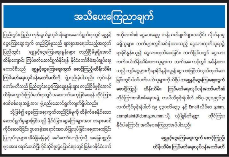 တရားမဝင် မမှန်မကန်ဆောင်ရွက်သည့် ကိစ္စရပ်များရှိပါက တိုင်ကြားရန် အသိပေးကြေညာခြင်း