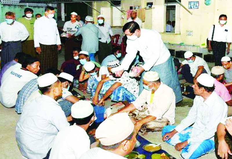 ရန်ကုန်တိုင်းဒေသကြီးအတွင်းရှိ အစ္စလာမ်ဘာသာဝင်များ၏ ရာမဒန်လမြတ်ကာလတွင် ဥပုသ်ဝင်ရောက်ကြသူများအတွက် စားသောက်ဖွယ်ရာများကို ရန်ကုန်တိုင်းဒေသကြီးဝန်ကြီးချုပ် ဦးစိုးသိန်း၊ ရန်ကုန်တိုင်းစစ်ဌာနချုပ် တိုင်းမှူးဗိုလ်ချုပ်ညွန့်ဝင်းဆွေနှင့် တာဝန်ရှိသူများက သွားရောက်ပေးအပ်လှူဒါန်းလျက်ရှိသည်။
