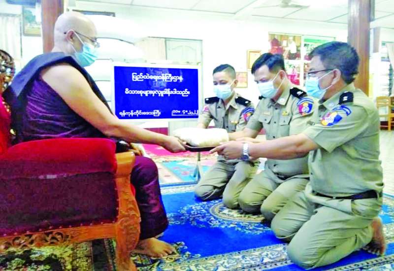 ပြည်ထဲရေးဝန်ကြီးဌာနတပ်ဖွဲ့ဝင်/ဝန်ထမ်းအရာထမ်း၊ အမှုထမ်းမိသားစုများက မြို့နယ်အသီးသီးရှိ ဘုန်းတော်ကြီးကျောင်းများသို့ ဆွမ်းဆန်တော်များ ဆက်ကပ်လှူဒါန်းခြင်းကို ဆောင်ရွက်လျက်ရှိသည်။