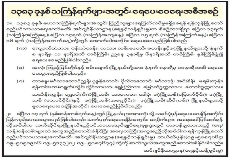 မြန်မာ့ရိုးရာ သင်္ကြန်ပွဲတော်ကို ကိုဗစ်-၁၉ ရောဂါ ကာကွယ်ထိန်းချုပ် နိုင်ရေးအတွက် နှစ်နှစ်တိုင်တိုင် ကျင်းပခြင်း မရှိခဲ့သော်လည်း ယခုနှစ်တွင် ရန်ကုန်မြို့တော် နေပြည်သူများ မြန်မာ့ရိုးရာယဉ်ကျေးမှု အစဉ်အလာနှင့်အညီ စိတ်လက်ပေါ့ပါးပြီး ပျော်ရွှင်ချမ်းမြေ့စေရန် ပြန်လည် ကျင်းပနိုင်ရေးအတွက် ရန်ကုန်တိုင်းဒေသကြီးအစိုးရအဖွဲ့၏ ညွှန်ကြားမှုဖြင့် ရန်ကုန်မြို့တော် စည်ပင်သာယာရေးကော်မတီက စီစဉ်ဆောင်ရွက်လျက်ရှိကြောင်း သိရသည်။