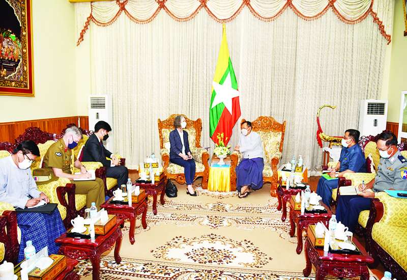 နိုင်ငံတော်စီမံအုပ်ချုပ်ရေးကောင်စီအဖွဲ့ဝင်၊ ပြည်ထဲရေးဝန်ကြီးဌာန ပြည်ထောင်စုဝန်ကြီး ဒုတိယ ဗိုလ်ချုပ်ကြီး စိုးထွဋ်သည် တာဝန် ပြီးဆုံး၍ ပြန်လည်ထွက်ခွာမည့် မြန်မာနိုင်ငံဆိုင်ရာ ဩစတြေးလျ နိုင်ငံသံအမတ်ကြီး H.E.Ms. Andrea Marie Faulkner ဦးဆောင် သောအဖွဲ့အား ဧပြီ ၇ ရက် ညနေ ၄ နာရီတွင် ပြည်ထောင်စုဝန်ကြီး၏ ဧည့်ခန်းမ၌ လက်ခံ တွေ့ဆုံသည်။
