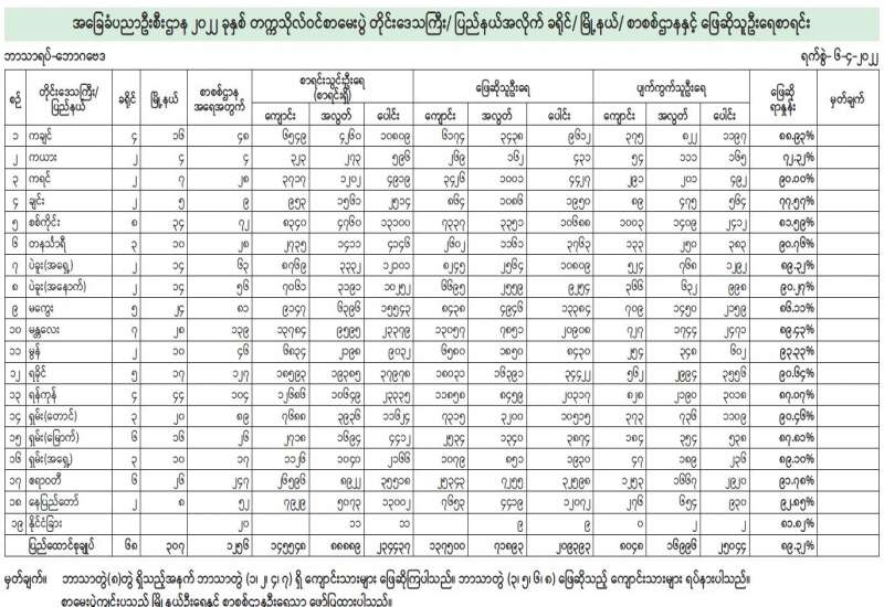 ၂၀၂၂ ခုနှစ် တက္ကသိုလ်ဝင်စာမေးပွဲ ဆဋ္ဌမနေ့ကို ယနေ့နံနက်ပိုင်းတွင် ကျင်းပရာ တစ်နိုင်ငံလုံးအတိုင်းအတာဖြင့် ဘောဂဗေဒဘာသာရပ် လာရောက်ဖြေဆိုသူ စုစုပေါင်း ၂၀၉၃၉၃ ဦးရှိကြောင်း သိရသည်။