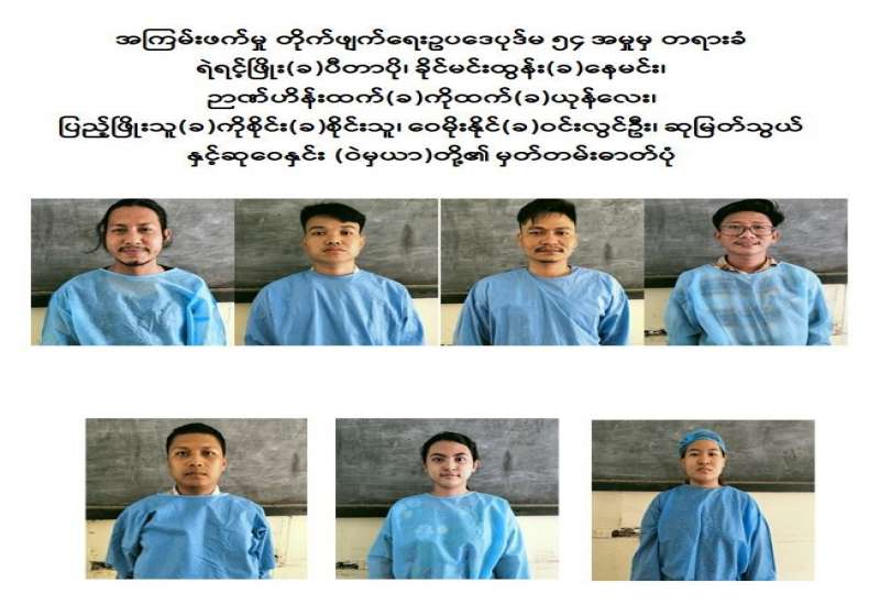 ရန်ကုန်တိုင်းဒေသကြီး၊ မြောက်ဥက္ကလာပမြို့နယ်၊ ဒေါပုံမြို့နယ်နှင့် အင်းစိန်မြို့နယ်နေ ဆုဝေနှင်း(ဘ)ဦးတင့်လွင်၊ ဆုမြတ်သွယ် (ဘ)ဦးစိန်မိုး၊ ခိုင်မင်းထွန်း (ခ)နေမင်း (ဘ)ဦးလှနိုင်၊ ဉာဏ်ဟိန်းထက် (ခ)ကိုထက် (ခ)ယုန်လေး (ဘ)ဦးစိုးဝင်း၊ ပြည့်ဖြိုးသူ(ခ)ကိုစိုင်း (ခ)စိုင်းသူ(ဘ)ဦးအေးသန်း၊ ရဲရင့်ဖြိုး(ခ)ပီတာပို(ဘ)ဦးညီညီလွင်၊ ဝေမိုးနိုင်(ခ)ဝင်းလွင်ဦး (ဘ)ဦးခင်ထွန်းနှင့် သန်းဇော်(ခ)ဝတုတ်(ခ)ကျောင်းဆရာ(ဘ) ဦးမောင် တို့သည် မြောက်ဥက္ကလာပမြို့နယ်၊ (ဇ)ရပ်ကွက်ရှိ Wifi ကားရေဆေးဆိုင်မှ ဆိုင်ရှင်ဖြစ်သူအား သုနန္ဒာလမ်းနှင့် မေဓာဝီလမ်းဆုံ၌ သေနတ်ဖြင့်ပစ် ခတ်သတ်ဖြတ်ခဲ့ပြီး နိုင်ငံတော်က သတ်မှတ်ကြေညာထားသည့် အကြမ်းဖက်အဖွဲ့အစည်းများ၏ လက်အောက်ခံအဖြစ် အများပြည်သူ၏ လုံခြုံရေးကိုထိခိုက်ဆုံးရှုံးစေရန် အကြမ်းဖက် မှုကျူးလွန်ခဲ့ခြင်းကြောင့် လည်းကောင်း၊ ဆုမြတ်သွယ်(ဘ)ဦးစိန်မိုး၊ ခိုင်မင်းထွန်း (ခ)နေမင်း(ဘ) ဦးလှနိုင်၊ ဉာဏ်ဟိန်းထက်(ခ) ကိုထက်(ခ)ယုန်လေး(ဘ)ဦးစိုးဝင်း၊ ပြည့်ဖြိုးသူ(ခ) ကိုစိုင်း(ခ)စိုင်းသူ(ဘ)ဦးအေးသန်း၊ ရဲရင့်ဖြိုး(ခ)ပီတာပို(ဘ) ဦးညီညီလွင်၊ ဝေမိုးနိုင်(ခ) ဝင်းလွင်ဦး(ဘ)ဦးခင်ထွန်း၊ သန်းဇော်(ခ)ဝတုတ်(ခ) ကျောင်းဆရာ(ဘ) ဦးမောင် နှင့် ကိုလတ် တို့သည် မြောက်ဉက္ကလာပမြို့မရဲစခန်း အပါအဝင် အများ ပြည်သူများ သွားလာလျက်ရှိသည့် နေရာများ၊ လုံခြုံရေးစခန်းများ၊ ဘဏ်များ၊ နိုင်ငံပိုင်အဆောက်အဦများနှင့် လုံခြုံရေးတာဝန်ထမ်းဆောင်နေသည့် လုံခြုံရေး တပ်ဖွဲ့ဝင်များအား လက်နက်ငယ်များ၊ လက်လုပ်မိုင်းများဖြင့် ဖောက်ခွဲတိုက်ခိုက်ခြင်းများကို လုပ်ဆောင်ခဲ့ခြင်းတို့ကြောင့်လည်းကောင်း စစ်အုပ်ချုပ်ရေး (Martial Law) စစ်ခုံရုံးဖွဲ့၍ စစ်ဆေးမှုများ ဆောင်ရွက်ခဲ့ရာ အကြမ်းဖက်မှုတိုက်ဖျက်ရေး ဉပဒေပုဒ်မ ၅၄ အရ ၂၀၂၂ ခုနှစ်၊ မတ် ၃၀ ရက်တွင် ၎င်းတို့အား“သေဒဏ်” ပြစ်ဒဏ်ကို အသီးသီးအမိန့်ချမှတ်လိုက်ကြောင်း သိရှိရသည်။