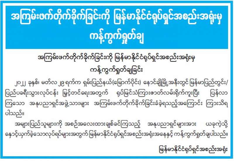 အနုပညာရှင်များ စီးနင်းလိုက်ပါလာသည့် မီးရထားအား အကြမ်းဖက်သမား များက မိုင်းခွဲတိုက်ခိုက်မှုအပါအဝင်အကြမ်းဖက်လုပ်ဆောင်မှုမှန်သမျှကို လုံးဝ(လုံးဝ) လက်မခံကန့်ကွက်ကြောင်း မြန်မာနိုင်ငံစာရေးဆရာ သတင်းက သဘောထားထုတ်ပြန်