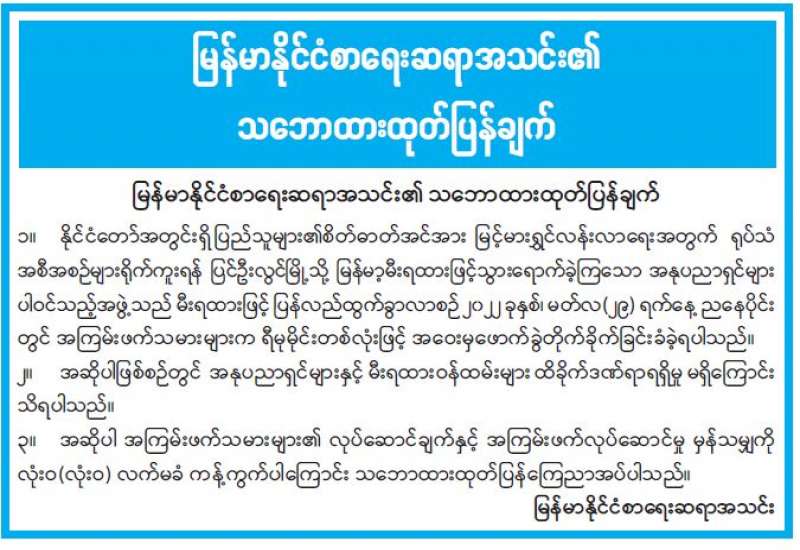 နောင်ကျင်းပမည့် ရွေးကောက်ပွဲများတွင် မဲဆန္ဒရှင်စာရင်းမှန်ကန်ရေးအတွက် ပန်းခင်းစီမံချက်ဖြင့် ပေါင်းစပ်ဆောင်ရွက်ရေး ညှိနှိုင်းအစည်းအဝေးကို ယနေ့နံနက် (၁၁)နာရီခွဲတွင် နေပြည်တော်ရှိ အဆိုပါဝန်ကြီးဌာန အစည်းအဝေး ခန်းမ၌ကျင်းပသည်။