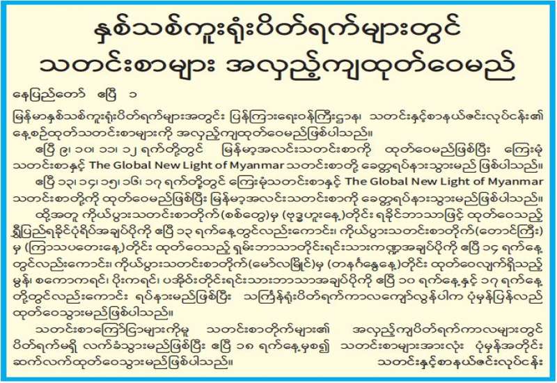 နိုင်ငံတော်စီမံအုပ်ချုပ်ရေးကောင်စီ၊ သတင်းထုတ်ပြန်ရေးအဖွဲ့၏ (၁၂) ကြိမ်မြောက် သတင်းစာ ရှင်းလင်းပွဲကို မတ် ၂၄ ရက် မွန်းလွဲ ၁ နာရီတွင် ပြန်ကြားရေးဝန်ကြီးဌာန၊ ဝန်ကြီးရုံး စုပေါင်း အစည်းအဝေး ခန်းမ၌ ကျင်းပသည်။