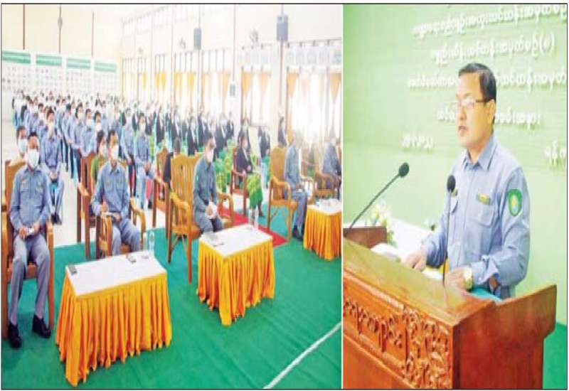 နယ်စပ်ရေးရာဝန်ကြီးဌာန ပညာရေးနှင့် လေ့ကျင့်ရေးဦးစီးဌာန ဗဟိုလေ့ကျင့်ရေးကျောင်းတွင် ဖွင့်လှစ်ခဲ့သည့် ဝန်ထမ်းများ လုပ်ငန်း စွမ်းဆောင်ရည်မြှင့်တင်ရေး သင်တန်းများဖြစ်သော ဘဏ္ဍာရေးစည်းမျဉ်း အထူးသင်တန်း အမှတ်စဉ် (၃၁)၊ ပစ္စည်းထိန်းသင်တန်း အမှတ် စဉ်(၈) နှင့် အလုပ်အကိုင်အခွင့်အလမ်းရရှိရေး သင်တန်းဖြစ်သော ခေတ်မီမော်တာအထည်ချုပ်စက် သင်တန်းအမှတ်စဉ်(၂၆) သင်တန်းများ ဆင်းပွဲ အခမ်းအနားကို ယမန်နေ့ နံနက် ၈ နာရီခွဲတွင် သင်တန်းကျောင်းခန်းမ၌ ကျင်းပရာ နယ်စပ်ရေးရာဝန်ကြီးဌာန အမြဲတမ်းအတွင်းဝန် ဦးသိန်းဌေးဦး တက်ရောက်၍ သင်တန်းဆင်းပွဲ မိန့်ခွန်းပြောကြားသည်။