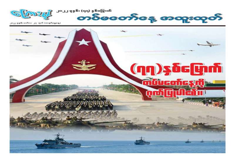 ၂၀၂၂ ခုနှစ် မတ်လ ၂၇ ရက်နေ့သည် (၇၇)နှစ်မြောက် တပ်မတော်နေ့ဖြစ်သည်။ လွတ်လပ်ရေး ကြိုးပမ်းမှုနှင့်အတူ သန္ဓေတည် မွေးဖွားလာသော တပ်မတော်သည် (၇၇)နှစ်တိုင်တိုင် နိုင်ငံတော်နှင့် တိုင်းရင်းသားပြည်သူတို့ကို အလုပ်အကျွေးပြုခဲ့ပြီးဖြစ်သည်။ ရှေ့ဆက်ပြီး လည်း ပြည်ထောင်စုကြီး ထာဝစဉ်အဓွန့်ရှည်အောင် စောင့်ရှောက်ကာကွယ်ပြီး နိုင်ငံတော်နှင့်ပြည်သူကို ဆက်လက်အလုပ်အကျွေး ပြုနေဦး မည်ဖြစ်သည်။
