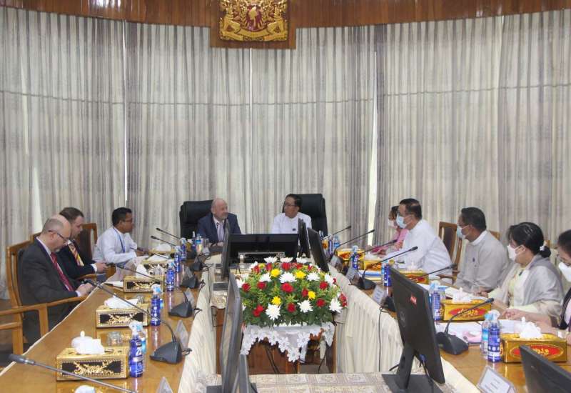 စီမံကိန်းနှင့် ဘဏ္ဍာရေးဝန်ကြီးဌာန၊ ပြည်ထောင်စုဝန်ကြီး ဦးဝင်းရှိန်သည် ယနေ့နံနက် ၁၀ နာရီတွင် ဥရောပအာရှ စီးပွားရေးကော်မရှင်၊ အကြီးစားစီးပွားရေးလုပ်ငန်းပူးပေါင်းဆောင်ရွက်ရေး အတွင်းရေးမှူးချုပ်ရုံးမှ အကြီးအကဲ Mr. Andrey DIANSKY ဦးဆောင်သည့် ကိုယ်စားလှယ်အဖွဲ့အား နေပြည်တော်ရှိ စီမံကိန်းနှင့် ဘဏ္ဍာရေးဝန်ကြီးဌာန၊ ပြည်ထောင်စုဝန်ကြီးရုံး၊ အစည်းအဝေးခန်းမ၌ လက်ခံတွေ့ဆုံသည်။