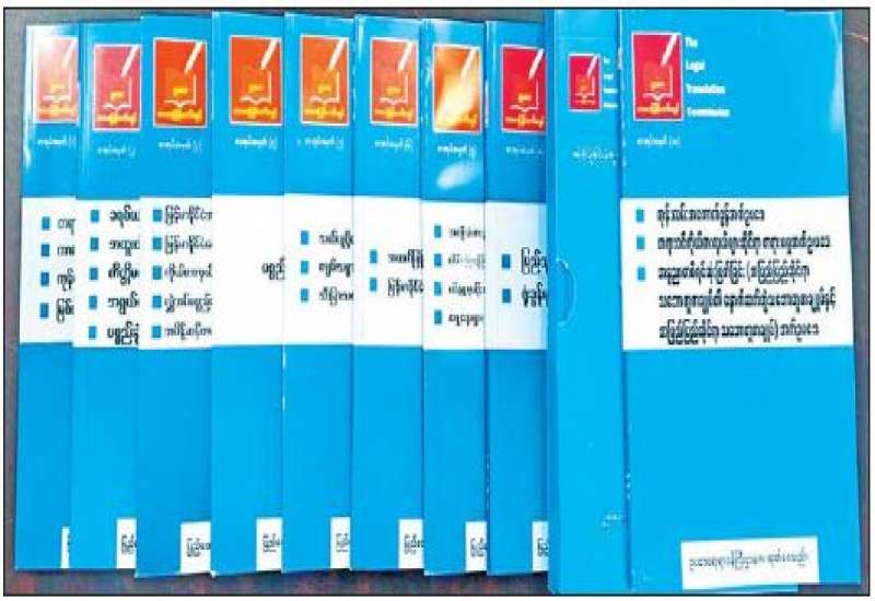 ဥပဒေရေးရာဝန်ကြီးဌာနသည် ဥပဒေဘာသာပြန်ကော်မရှင်က မြန်မာဘာသာသို့ ပြန်ဆိုပြီး သည့်ဥပဒေများကို စာအုပ်ထုတ်ဝေလျက်ရှိရာ ဘာသာပြန် စာအုပ်အမှတ် (၁) မှ (၁၀) အထိ စာအုပ်များကို ထုတ်ဝေပြီးဖြစ်သည်။