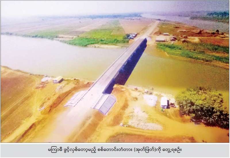 ပဲခူးတိုင်းဒေသကြီး ဖြူးမြို့နယ် ဖြူး-အုတ်ဖြတ်-မုန်း ကားလမ်းပေါ်တွင် ဆောက်လုပ်ရေး ဝန်ကြီးဌာန တံတားဦးစီးဌာန တံတားအထူးအဖွဲ့(၁၀)က တာဝန် ယူတည်ဆောက်ခဲ့သော စစ်တောင်း မြစ်ကူးတံတား(အုတ်ဖြတ်)မှာ ယခုအခါ တည်ဆောက်ခြင်းလုပ်ငန်းများ ရာနှုန်းပြည့် ပြီးစီးသွားပြီဖြစ်၍ ပြည်သူများ အသုံးပြုနိုင်ရန် မကြာမီဖွင့်လှစ်တော့မည်ဖြစ်သည်။