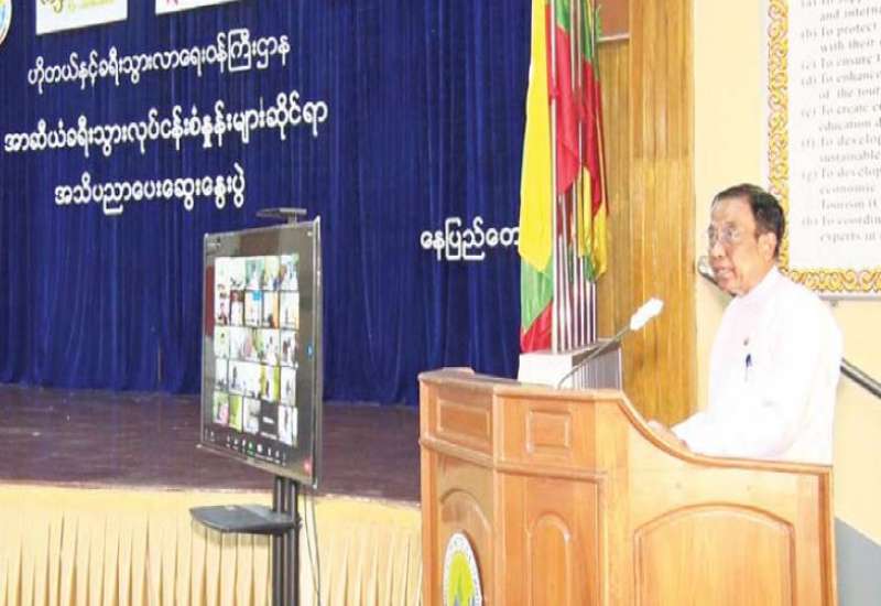ဟိုတယ်နှင့် ခရီးသွားလာရေးဝန်ကြီးဌာန ပြည်ထောင်စုဝန်ကြီး ဒေါက်တာဌေးအောင်သည် ယနေ့ နံနက်ပိုင်းတွင် ဝန်ကြီးဌာန ကျောက်စိမ်းခန်းမ၌ ဗီဒီယိုကွန်ဖရင့်ဖြင့် ကျင်းပသော အာဆီယံခရီးသွားလုပ်ငန်း စံနှုန်းများဆိုင်ရာ အသိပညာပေး ဆွေးနွေးပွဲသို့ တက်ရောက်သည်။