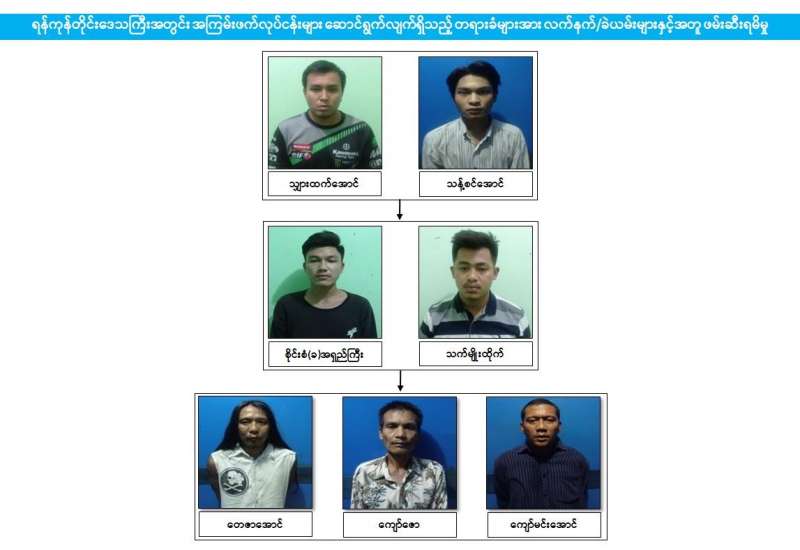 နိုင်ငံတော်မှ အကြမ်းဖက်အဖွဲ့အစည်းအဖြစ် သတ်မှတ်ထားသည့် CRPH၊ NUG နှင့် PDF အမည်ခံအကြမ်းဖက်အဖွဲ့ဝင်များ မြို့ရွာများတွင် လှုပ်ရှားသွားလာမှု မရှိစေရေး နေ့/ညမပြတ် ဖော်ထုတ်ဖမ်းဆီးခြင်းများ ဆောင်ရွက်လျက်ရှိရာ ၂၀၂၂ ခုနှစ်၊ မတ်လ ၆ ရက် ညပိုင်းတွင် တာဝန်သိပြည်သူများ၏ သတင်းပေးပို့ချက်အရ လုံခြုံရေးတပ်ဖွဲ့ဝင်များသည် မြောက်ဥက္ကလာပ မြို့နယ်၊ (ဋ)ရပ်ကွက်၊ အမှတ်(၃၅၅) နေအိမ်၌ သျှားထက်အောင်(၂၄)နှစ်အား ပစ္စတို ၁ လက်၊ ကျည်အိမ် ၂ ခု၊ ၉ မမ ကျည် ၉ တောင့်၊ ဖုန်းမျိုးစုံ ၂ လုံးတို့နှင့်အတူ ဖမ်းဆီးရမိပြီး တရားခံ သွားထက်အောင်၏ ထွက်ဆိုချက်အရ မြောက်ဥက္ကလာပမြို့နယ်၊ ဝေဘာဂီမြို့သစ်၊ (၄)ရပ်ကွက်၊ အမှတ်(၈၇)နေအိမ်၌ သန့်စင်အောင်(၂၃)နှစ်အား ဖမ်းဆီး ရမိခဲ့သည်။