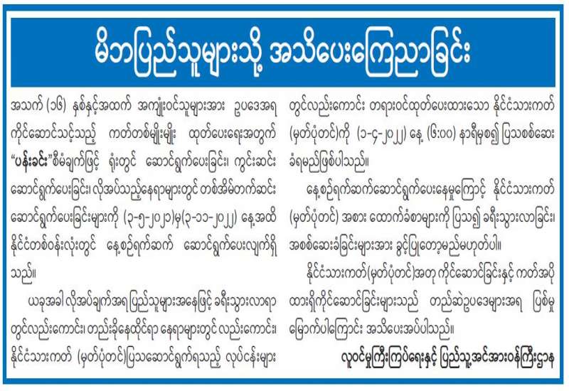 အကြမ်းဖက်အုပ်စုအဖြစ်ကြေငြာထားသော CRPH၊ NUG နှင့် ယင်းတို့၏ လက်အောက်ခံ အဖွဲ့အစည်းများ၊ ယင်းတို့နှင့်ဆက်နွယ်နေသော အဖွဲ့အစည်းများ၊ လူပုဂ္ဂိုလ်များသည် နိုင်ငံတော် တည်ငြိမ်အေးချမ်းရေးကို ပျက်ပြားစေရန်နှင့် ပြည်သူလူထုကို အကြောက်တရားများ ဖြစ်ပေါ်စေပြီး အစိုးရယန္တရားများ ပျက်ပြားစေရန် ရည်ရွယ်လျက် လှုံ့ဆော်ခြင်း၊ ဝါဒဖြန့်ခြင်း၊ ခြိမ်းခြောက်ခြင်းများကို လူမှုကွန်ရက်များမှတစ်ဆင့် နည်းမျိုးစုံဖြင့် ပြုလုပ်လျက်ရှိပါသည်။