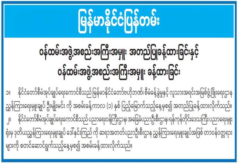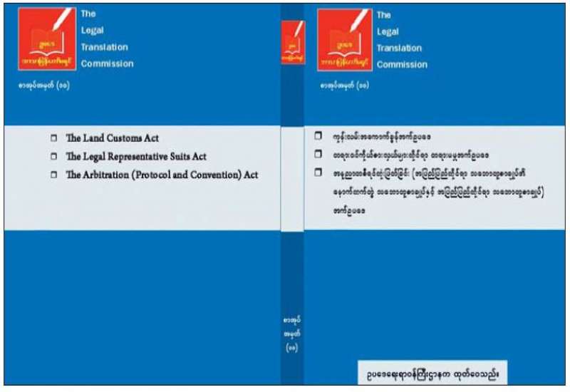 ဥပဒေရေးရာ ဝန်ကြီးဌာနသည် ဥပဒေဘာသာပြန် ကော်မရှင်က မြန်မာဘာသာသို့ ပြန်ဆိုပြီးသည့် ဥပဒေများကို စာအုပ်ထုတ်ဝေလျက်ရှိရာ ဘာသာပြန်စာအုပ် အမှတ် (၁၀) စာအုပ်ကို ထုတ်ဝေပြီး ဖြစ်သည်။