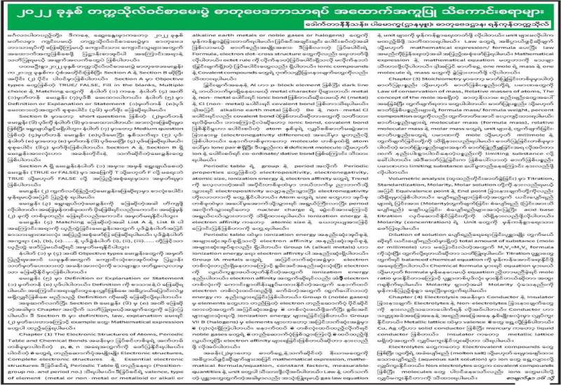 ၂၀၂၂ ခုနှစ် တက္ကသိုလ်ဝင်စာမေးပွဲ ဓာတုဗေဒဘာသာရပ် အထောက်အကူပြု သိကောင်းစရာများ