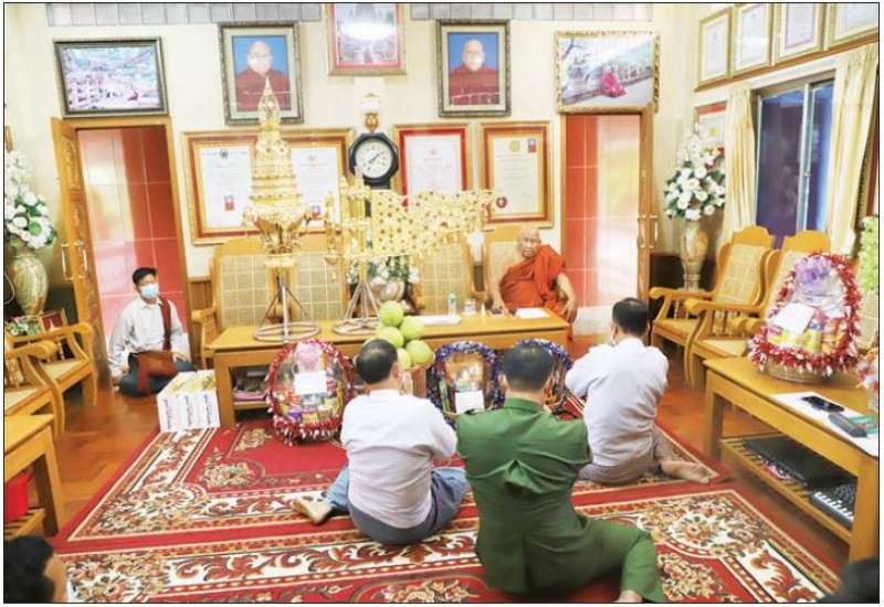 အဋ္ဌမအကြိမ် နိုင်ငံတော်သံဃမဟာနာယကအဖွဲ့ (၄၇) ပါးစုံညီ ဒသမ အစည်းအဝေးသို့ ကြွရောက်တော်မူလာကြသော နိုင်ငံတော် သံဃမဟာနာယက အဖွဲ့ဝင်ဆရာတော် အရှင်မြတ်တို့ဘုရား -