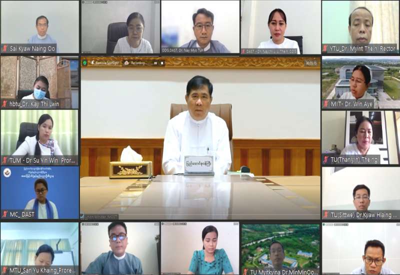 တက္ကသိုလ်များ စဉ်ဆက်မပြတ် ဖွံ့ဖြိုးတိုးတက်ရေး လုပ်ငန်းညှိနှိုင်းအစည်းအဝေးကို ယနေ့ နံနက် ၁၀ နာရီတွင် သိပ္ပံနှင့်နည်းပညာဝန်ကြီးဌာန၌ ဗွီဒီယိုကွန်ဖရင့်စနစ်ဖြင့် ကျင်းပသည်။