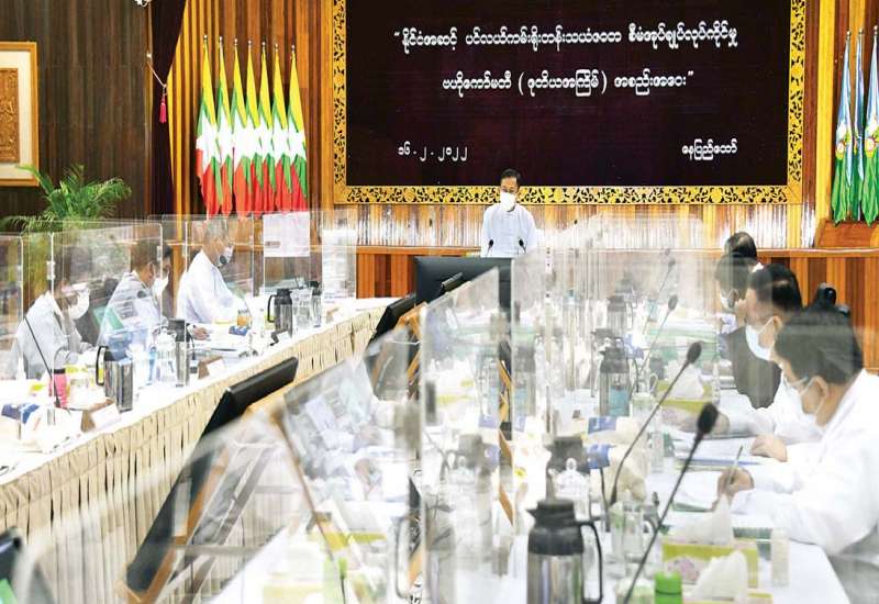 ဧရာဝတီတိုင်းဒေသကြီး ရခိုင်ပြည်နယ်နှင့် ချင်းပြည်နယ်အတွင်း ဆောင်ရွက်လျက်ရှိသည့် ကိုဗစ်-၁၉ ရောဂါ ကာကွယ်၊ ထိန်းချုပ်၊ ကုသရေးနှင့် အရေးပေါ်တုံ့ပြန်ရေးဆိုင်ရာ လုပ်ငန်းညှိနှိုင်း အစည်းအဝေးများကို ယနေ့တွင် သက်ဆိုင်ရာ တိုင်းဒေသကြီးနှင့် ပြည်နယ်အသီးသီးရှိ အစည်းအဝေးခန်းမများ၌ ပြုလုပ်ကြရာ တိုင်းဒေသကြီးနှင့် ပြည်နယ်များမှ ဝန်ကြီးချုပ်များ၊ တိုင်းစစ်ဌာနချုပ်အသီးသီးမှ တိုင်းမှူးများနှင့် တာဝန်ရှိသူများ၊ ဌာနဆိုင်ရာ တာဝန်ရှိသူများ တက်ရောက်ကြသည်။