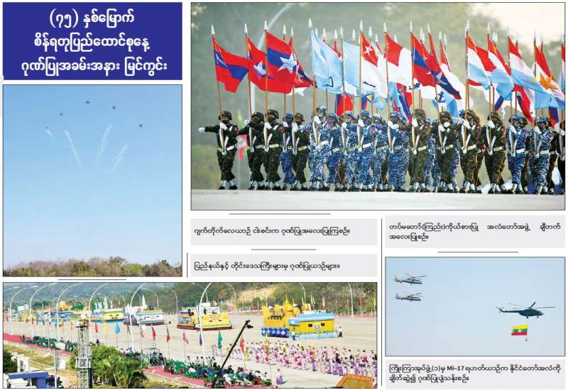 ၂၀၂၂ ခုနှစ် (၇၅)နှစ်မြောက် စိန်ရတုပြည်ထောင်စုနေ့ ဂုဏ်ပြုအခမ်းအနားကို ယနေ့နံနက်ပိုင်းတွင် နေပြည်တော်ရှိ ဗိုလ်ရှုခံရင်ပြင်၌ကျင်းပရာ နိုင်ငံတော် စီမံအုပ်ချုပ်ရေးကောင်စီဥက္ကဋ္ဌ နိုင်ငံတော်ဝန်ကြီးချုပ် ဗိုလ်ချုပ်မှူးကြီး မဟာသရေစည်သူ မင်းအောင်လှိုင် တက်ရောက် မိန့်ခွန်းပြောကြားပြီး ဂုဏ်ပြုစစ်ကြောင်းများ၏ အလေးပြုခြင်းကို ခံယူသည်။