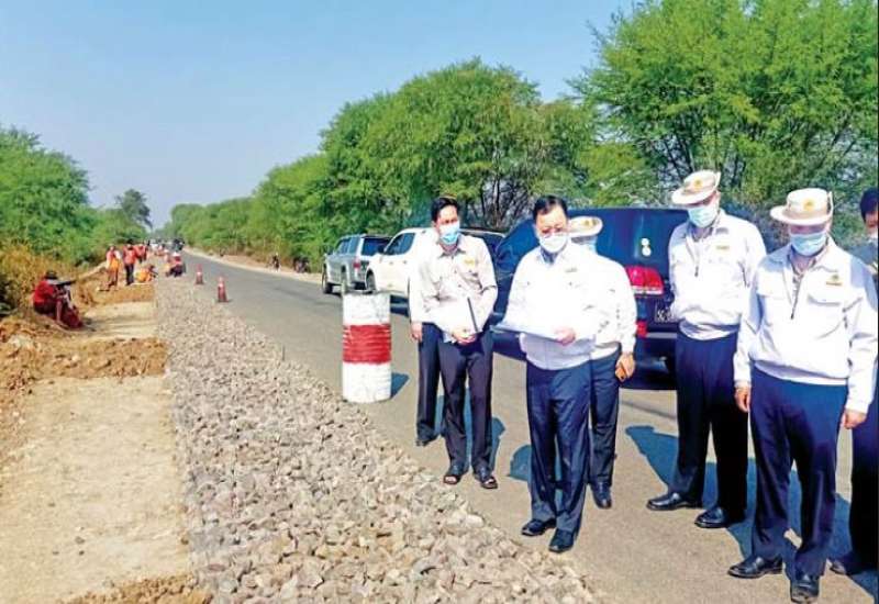 ပဲခူးတိုင်းဒေသကြီး ဝန်ကြီးချုပ် ဦးမျိုးဆွေဝင်းသည် တိုင်းဒေသကြီးဝန်ကြီးများ၊ တိုင်းဒေသကြီး ဥပဒေချုပ်၊ တာဝန်ရှိသူများနှင့်အတူ ဖေဖော်ဝါရီ ၃ ရက် နံနက်ပိုင်းက သာယာဝတီမြို့နယ် အလယ်ကုန်း-ဖိုးခေါင်-စံရွေးလမ်းပိုင်း၌ (၁)မိုင်(၅) ဖာလုံ၊ (၁၂)ပေအကျယ် ကတ္တရာခင်းခြင်း လုပ်ငန်း ဆောင်ရွက်နေမှုကိုကြည့်ရှုစစ်ဆေးသည်။