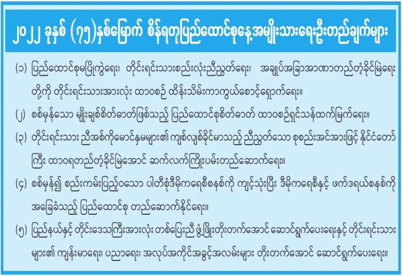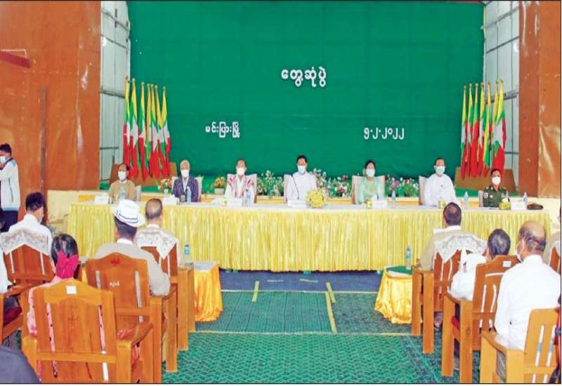 နိုင်ငံတော်စီမံအုပ်ချုပ်ရေးကောင်စီ အဖွဲ့ဝင်များဖြစ်ကြသည့် ဗိုလ်ချုပ်ကြီး တင်အောင်စန်း၊ မန်းငြိမ်းမောင်၊ ဒေါ်အေးနုစိန်၊ ဦးမောင်းဟာတို့သည် ဆောက်လုပ်ရေး ဝန်ကြီးဌာန ပြည်ထောင်စုဝန်ကြီး ဦးရွှေလေး၊ ရခိုင်ပြည်နယ်ဝန်ကြီးချုပ် ဒေါက်တာ အောင်ကျော်မင်း၊ အနောက်ပိုင်းတိုင်းစစ်ဌာနချုပ် တိုင်းမှူး ဗိုလ်ချုပ် ထင်လတ်ဦး၊ ပြည်နယ် ဝန်ကြီးများနှင့်အတူ ယနေ့ မွန်းလွဲပိုင်းတွင် ဌာနဆိုင်ရာများ၊ မြို့မိ/မြို့ဖများ၊ ဒေသခံပြည်သူများအား ရာမောင်ခန်းမ၌ တွေ့ဆုံ၍ ဒေသဖွံ့ဖြိုးရေး၊ လူမှုရေး၊ စီးပွား ရေး၊ ကျန်းမာရေး၊ လမ်းပန်းဆက်သွယ်ရေး ဆိုင်ရာများနှင့်ပတ်သက်၍ ဆွေးနွေးသည်။