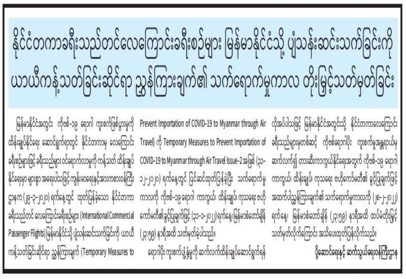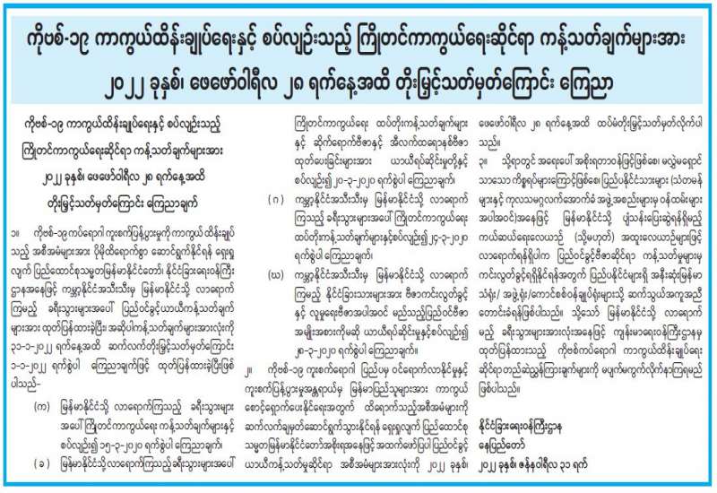 ကျန်းမာရေးဝန်ကြီးဌာနအနေဖြင့် နိုင်ငံအတွင်း ကူးစက်ဖြစ်ပွားနေသော COVID-19 ရောဂါ ကာကွယ်၊ ကုသ၊ ထိန်းချုပ်ရေးလုပ်ငန်းများကို အရှိန်အဟုန်မြှင့် ဆောင်ရွက်လျက်ရှိပါသည်။